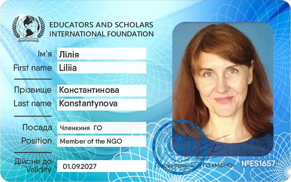 Член громадської організації «МІЖНАРОДНА ФУНДАЦІЯ НАУКОВЦІВ ТА ОСВІТЯН» (ГО МФНО, INTERNATIONAL EDUCATORS