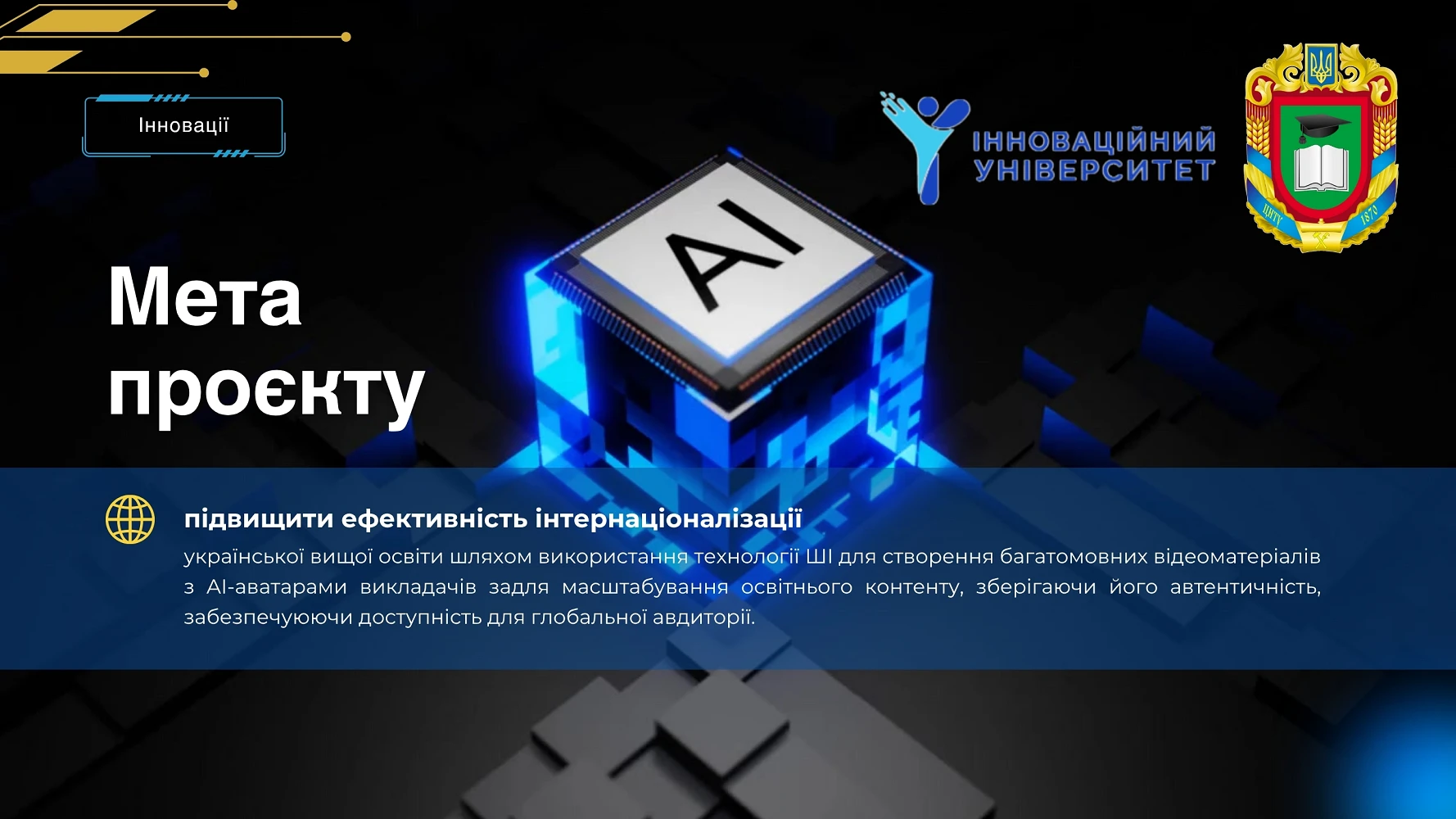 Проєкт виконано викладачами-науковцями ЦНТУ в межах програми «ШІ + освіта + наука 2.0» ГО «Інноваційний університет».