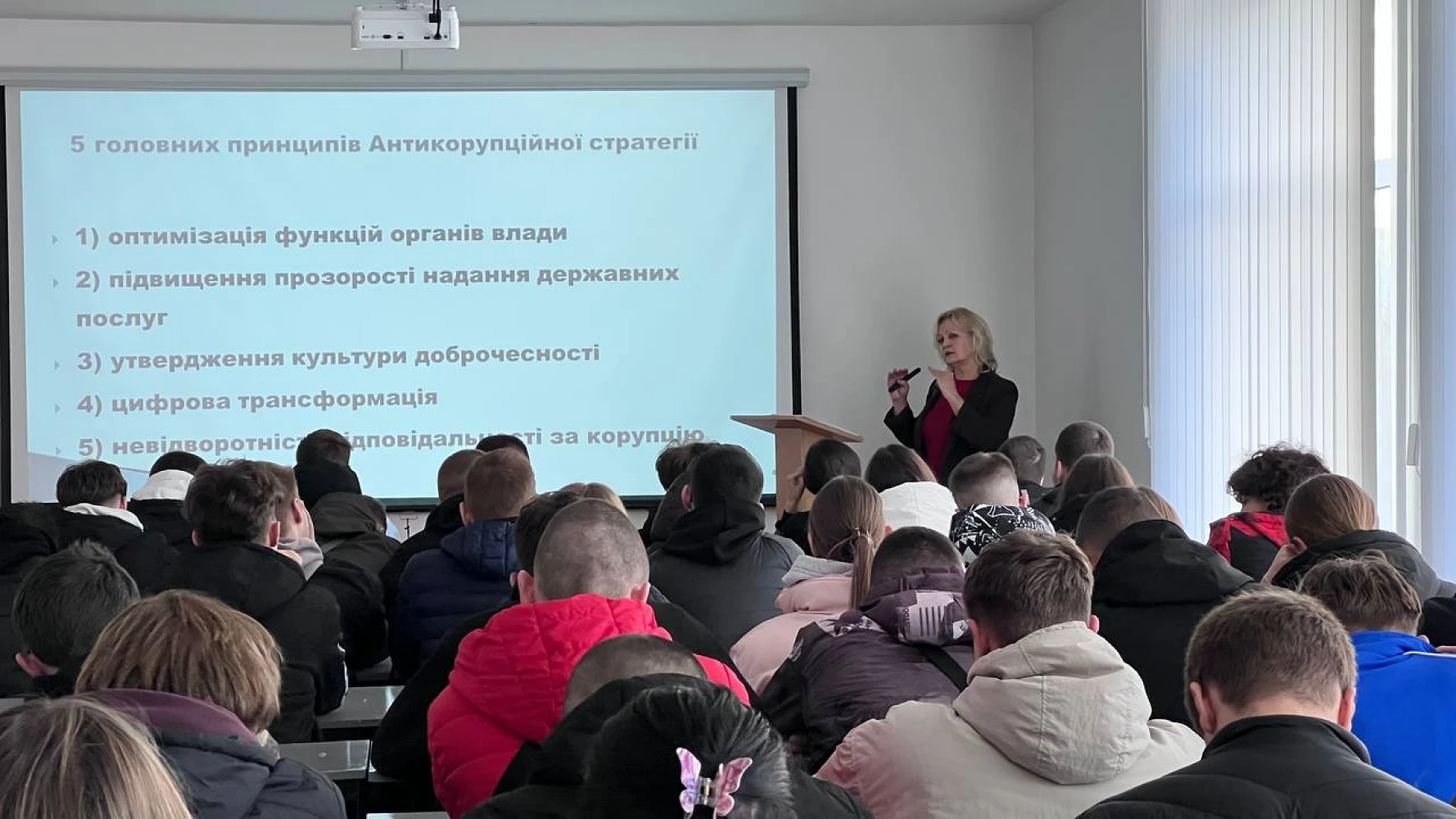 Заняття з навчальної дисципліни «Антикорупція та доброчесність» для студентів ІТ-спеціальностей ЦНТУ провела начальник відділу з питань запобігання та виявлення корупції Кіровоградської обласної військової адміністрації Людмила Омельянчук.